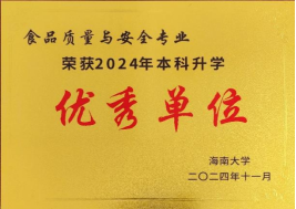 2024年11月28日,“海南大学 2024届毕业生就业工作表彰大会暨2025届毕业生就业工作启动会议”在行政楼一楼报告厅召开,对2024年就业工作表现突出的单位进行表彰。beat365在2024年毕业生就业与升学工作中成绩优异,毕业去向落实率为95.02%,位居全校学院第六名,荣获“2024年毕业生就业工作先进单位”称号。同时,beat365食品科学与工程专业和食品质量与安全专业,被授予“2024 年本科升学优秀单位”,田甜老师荣获“就业工作先进个人”。